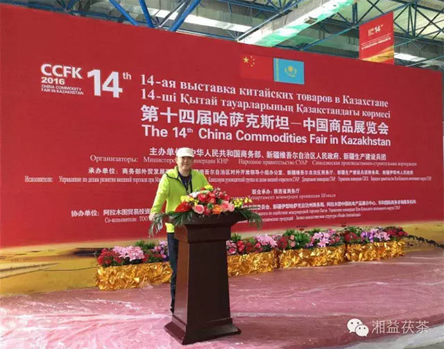 第十四屆哈薩克斯坦——中國(guó)商品展覽會(huì)于2016年5月20日在哈薩克斯坦阿拉木圖市隆重開(kāi)幕。為積極落實(shí)中央關(guān)于加快推進(jìn)絲綢之路經(jīng)濟(jì)帶建設(shè),加大企業(yè)開(kāi)拓中亞新興茶葉市場(chǎng),提升湘益茯茶在中亞各國(guó)的品牌優(yōu)勢(shì),新疆新益茶業(yè)有限責(zé)任公司做為兵團(tuán)代表之一向國(guó)外客商及消費(fèi)者展示了湘益牌系列茯磚茶產(chǎn)品并受到一致好評(píng)。