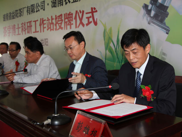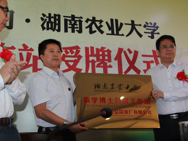 2015年10月22日,湖南農(nóng)業(yè)大學(xué)茶學(xué)博士科研工作站授牌儀式在湖南省益陽(yáng)茶廠有限公司隆重舉行。