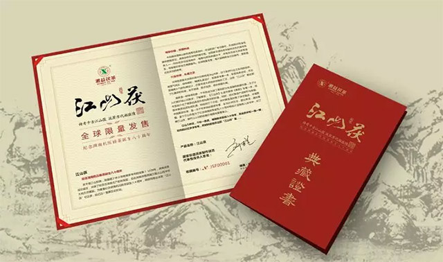 由國家非遺茯磚茶制作技藝代表性傳承人——劉杏益親自監(jiān)督制作,每套均具有典藏證書,并有劉杏益大師親筆簽名,每套都標(biāo)有獨立典藏編號。全球限量發(fā)售,每片都擁有獨立的編號,更彰顯此款茯茶的尊貴。