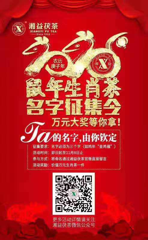 投稿被選為最終名稱的作者將獲得價(jià)值萬(wàn)元的湘益茯茶生肖茶!