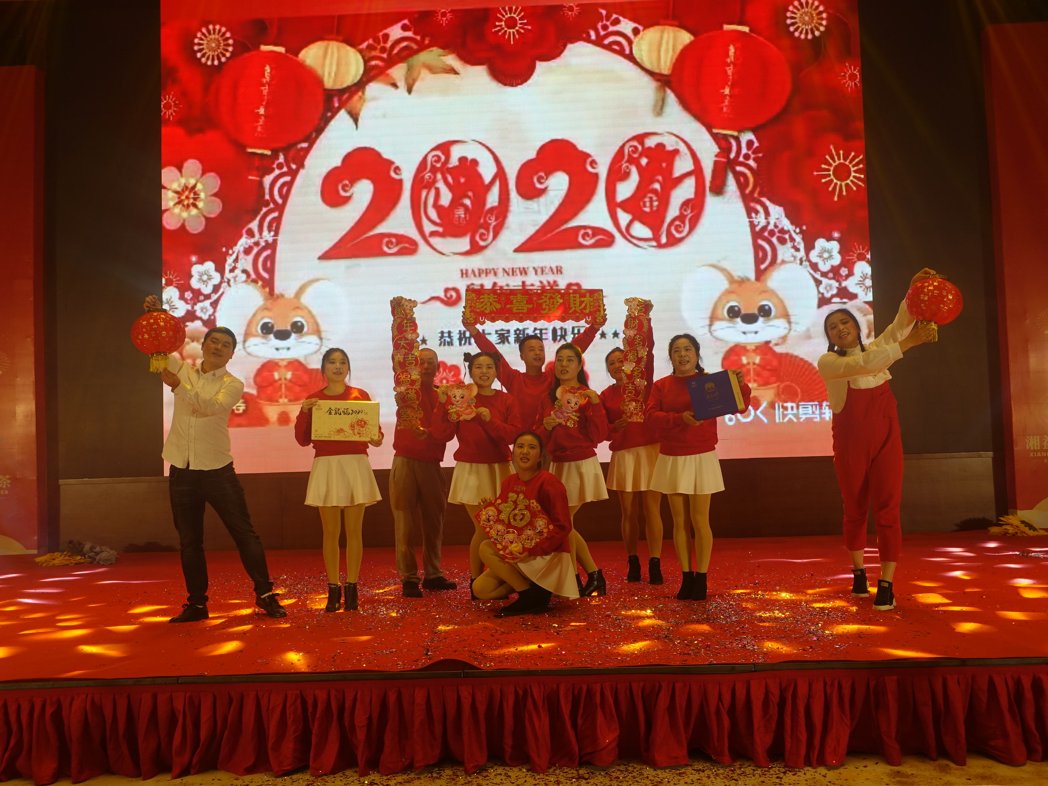 上午9點(diǎn),各位來賓戴著喜慶的湘益紅圍巾陸續(xù)入場就坐,年會在湘益2019年總結(jié)視頻中拉開序幕,由市場企劃部副經(jīng)理袁緒斌和朱輝全程主持。