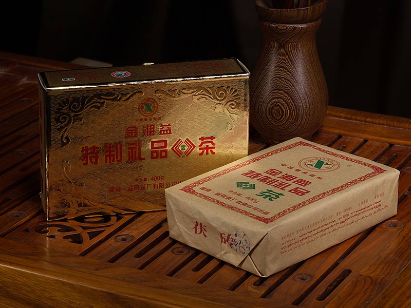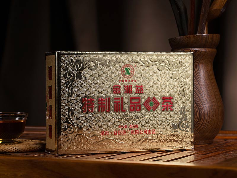 2002年,我公司通過改進(jìn)生產(chǎn)工藝和技術(shù)設(shè)備,研制開發(fā)了“金湘益”特制禮品茯茶。該產(chǎn)品采用優(yōu)質(zhì)黑毛茶為原料,科學(xué)精制而成,具有形美、質(zhì)佳、味香、金花普茂、滋味醇和的特點(diǎn)。