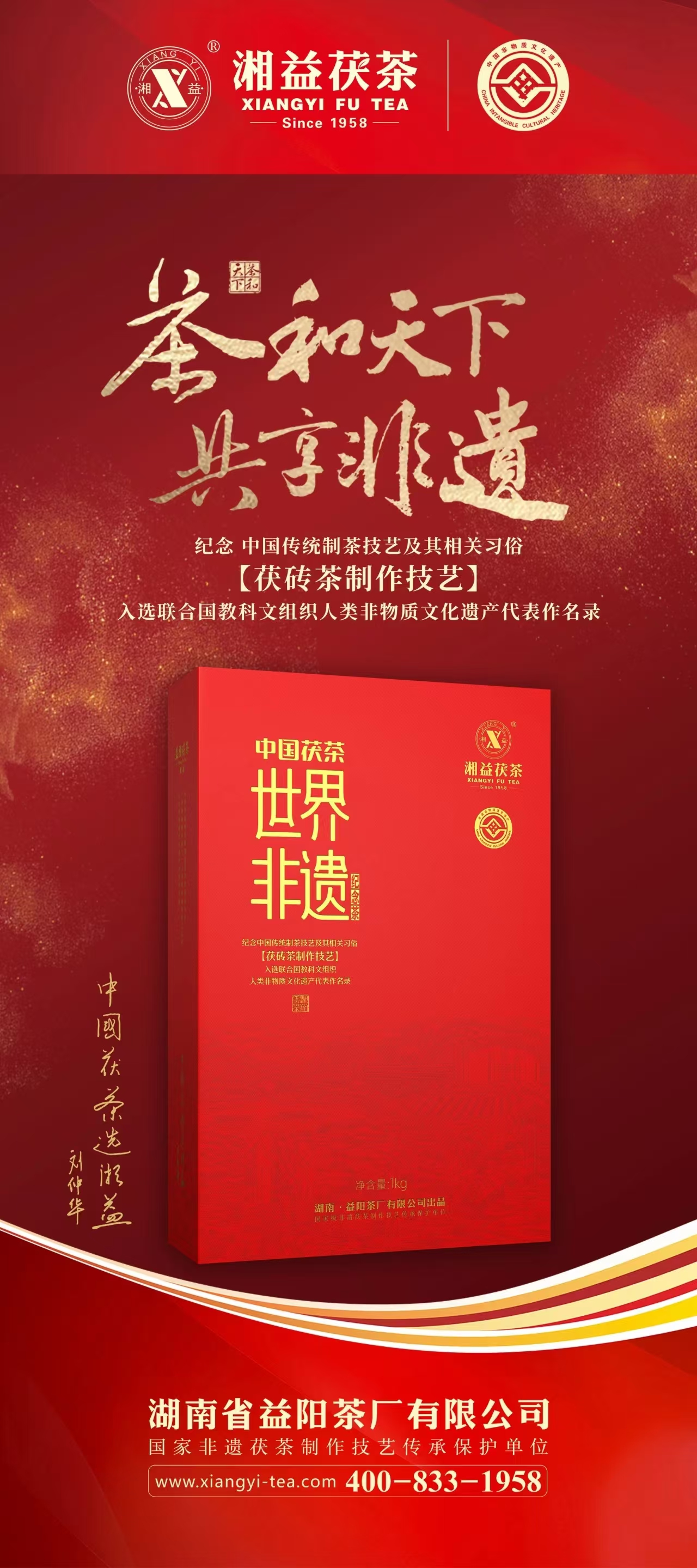2023年11月29日,“中國(guó)傳統(tǒng)制茶技藝及其相關(guān)習(xí)俗”被正式列入聯(lián)合國(guó)教科文組織人類非物質(zhì)文化遺產(chǎn)代表作名錄。茯磚茶制作技藝也被列入其中!該技藝的傳承保護(hù)單位為益陽(yáng)茶廠有限公司(湘益茯茶)。
