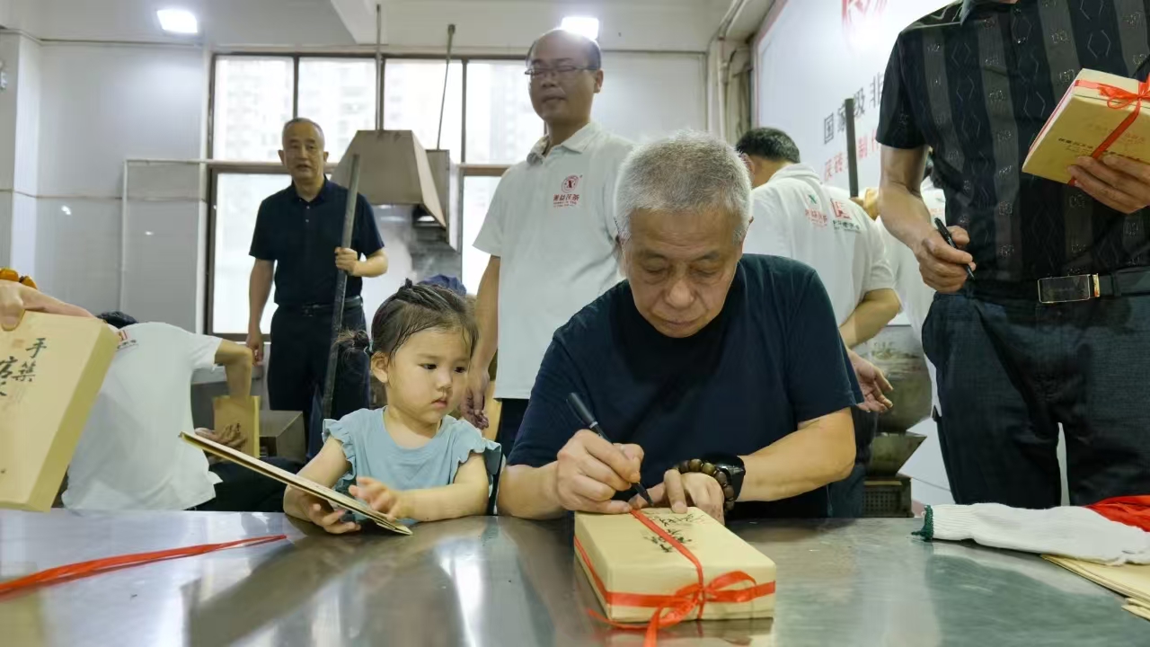 活動現(xiàn)場,參與者以益陽茶廠提供的8年陳茶原料,在劉杏益大師的指導(dǎo)下,從稱量、蒸茶到筑制、定型,完整還原手筑官茶非遺工藝,親手觸摸茶料溫度,感受茶磚從指尖誕生的過程。且每片茯磚茶都有大師親筆簽名、2025 國際茶日專屬標(biāo)識以及本人簽字留念,極具紀(jì)念意義。