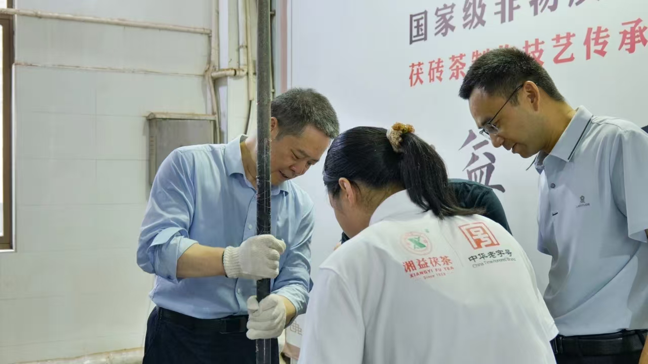 5 月 20 日,益陽市茶葉學(xué)會組織的2025年茶葉精深加工體驗系列活動在益陽茶廠有限公司隆重舉行,本次活動以“非遺傳承?手筑茯香” 為主題。作為國家級非遺茯磚茶制作技藝唯一傳承保護(hù)單位,益陽茶廠以沉浸式非遺體驗為核心,特邀國家級非遺傳承人劉杏益大師全程指導(dǎo),吸引了眾多愛茶人士深度參與。公司董事長彭雄根、總經(jīng)理余智勇、黨委書記兼常務(wù)副總經(jīng)理徐迪軍、副總經(jīng)理郝建等領(lǐng)導(dǎo)出席活動,與來賓共襄非遺文化傳承盛舉。
