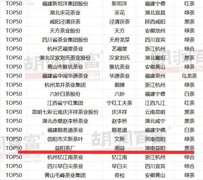 5月,胡潤研究院發(fā)布《2025胡潤中國茶葉領(lǐng)域典范企業(yè)榜》,益陽茶廠有限公司憑借其深厚的行業(yè)積淀、卓越的品牌價值及持續(xù)創(chuàng)新力再度躋身榜單,這是繼去年登榜后,益陽茶廠又一次獲此殊榮,進(jìn)一步鞏固了其在中國黑茶領(lǐng)域的龍頭地位及行業(yè)標(biāo)桿形象。