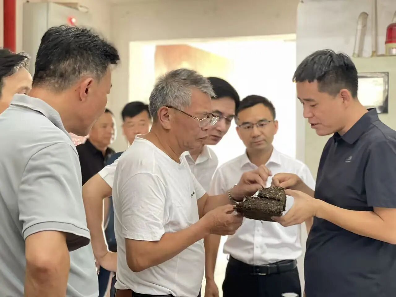 考察團深入?yún)⒂^公司篩分車間、壓制車間及金花酵庫,詳細(xì)了解茯磚茶的傳統(tǒng)制作技藝與現(xiàn)代生產(chǎn)工藝。在隨后舉行的座談會上,雙方就茶葉產(chǎn)業(yè)發(fā)展、品牌建設(shè)以及潛在合作機遇等進(jìn)行了交流。