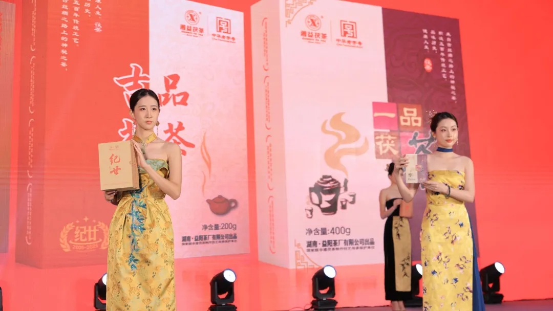 在發(fā)布儀式上,與會(huì)領(lǐng)導(dǎo)和專(zhuān)家共同啟動(dòng)推桿,隨著金沙傾瀉而下,"紀(jì)廿"新品正式亮相,象征著湘益茯茶開(kāi)啟新的發(fā)展征程。隨后,一場(chǎng)別開(kāi)生面的新品模特走秀吸引全場(chǎng)目光。身著典雅服飾的模特手捧"紀(jì)廿"新品,以?xún)?yōu)雅的姿態(tài)展示這款傳承與創(chuàng)新相結(jié)合的茯茶珍品,傳統(tǒng)茶文化與現(xiàn)代時(shí)尚在此完美交融,凸顯出新品的獨(dú)特魅力。