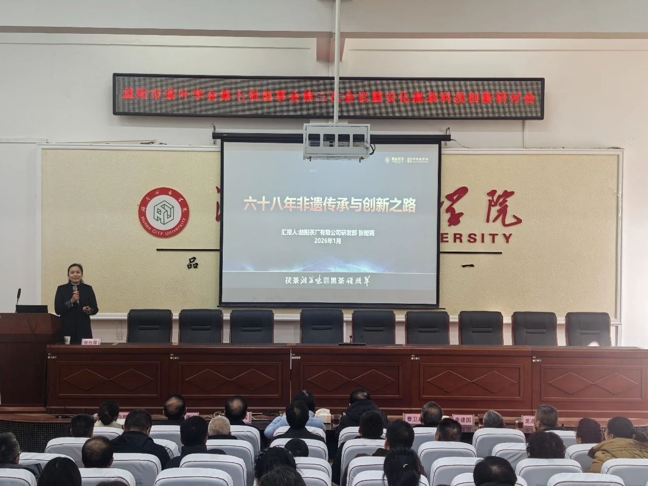 1月23日,益陽(yáng)市茶葉學(xué)會(huì)第七屆理事會(huì)第三次會(huì)議暨安化黑茶科技創(chuàng)新研討會(huì)在湖南城市學(xué)院召開(kāi)。作為學(xué)會(huì)副理事長(zhǎng)單位,公司董事長(zhǎng)彭雄根、總經(jīng)理余智勇、黨委書(shū)記兼常務(wù)副總經(jīng)理徐迪軍、首席專(zhuān)家劉杏益、副總經(jīng)理郝建等領(lǐng)導(dǎo)及技術(shù)骨干出席會(huì)議,與理事會(huì)成員、行業(yè)專(zhuān)家及同仁共商益陽(yáng)茶業(yè)發(fā)展大計(jì)。本次理事會(huì)由公司黨委書(shū)記、常務(wù)副總經(jīng)理徐迪軍主持。會(huì)議審議通過(guò)了學(xué)會(huì)年度工作報(bào)告、財(cái)務(wù)報(bào)告及人事調(diào)整議案,并為新晉理事單位授牌。在隆重的表彰環(huán)節(jié),會(huì)議宣讀了《關(guān)于表彰2025年度“點(diǎn)贊益陽(yáng)茶”優(yōu)秀成果的決定》。我公司報(bào)送的項(xiàng)目成果喜獲多項(xiàng)榮譽(yù):朱輝、余智勇同志的《國(guó)慶中秋雙節(jié)暨體驗(yàn)館煥新茶話(huà)會(huì)》獲評(píng)“優(yōu)秀特色茶會(huì)”;劉杏益大師的《劉大師說(shuō)茶系列》獲評(píng)“優(yōu)秀科普短視頻”;黃甜同志的《“新疆是個(gè)好地方”援疆活動(dòng)》獲評(píng)“優(yōu)秀科普展覽/活動(dòng)”。這些榮譽(yù)是對(duì)公司長(zhǎng)期以來(lái)堅(jiān)持科技創(chuàng)新、文化普及與社會(huì)責(zé)任實(shí)踐的高度認(rèn)可。隨后舉行的安化黑茶科技創(chuàng)新研討會(huì)上,公司產(chǎn)品研發(fā)部副經(jīng)理、中級(jí)農(nóng)藝師張婭莉代表公司,以《益陽(yáng)茶廠有限公司:六十八年非遺傳承與創(chuàng)新之路》為題,向與會(huì)嘉賓分享了我公司的科技創(chuàng)新經(jīng)驗(yàn)。報(bào)告系統(tǒng)梳理了公司自1958年創(chuàng)立以來(lái),在茯磚茶制作技藝這一國(guó)家級(jí)非物質(zhì)文化遺產(chǎn)傳承保護(hù)中所取得的里程碑式突破,并重點(diǎn)介紹了近年來(lái)依托傳統(tǒng)技藝,融合現(xiàn)代科技,在生產(chǎn)線(xiàn)智能化升級(jí)、高嫩原料發(fā)花技術(shù)攻克、產(chǎn)品形態(tài)與品類(lèi)創(chuàng)新等方面取得的系列成果,展現(xiàn)了我公司作為老字號(hào)龍頭企業(yè)在“三茶統(tǒng)籌”發(fā)展道路上的探索與擔(dān)當(dāng)。此次會(huì)議既是行業(yè)交流的盛會(huì),也是對(duì)我公司發(fā)展成績(jī)的集中檢閱。未來(lái),益陽(yáng)茶廠有限公司將繼續(xù)堅(jiān)守“湘益”品質(zhì),秉承非遺技藝精髓,深化科技創(chuàng)新驅(qū)動(dòng),積極履行社會(huì)責(zé)任,與學(xué)會(huì)及各會(huì)員單位攜手并肩,共同為推動(dòng)益陽(yáng)茶產(chǎn)業(yè)、安化黑茶產(chǎn)業(yè)的高質(zhì)量發(fā)展與文化繁榮貢獻(xiàn)更大力量。